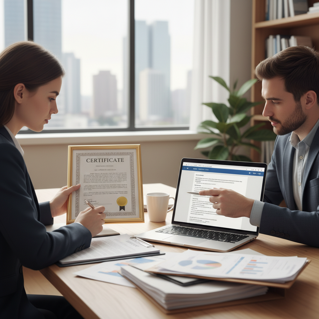 Weryfikacja certyfikatów, opinii, ubezpieczenia i regulaminu współpracy.